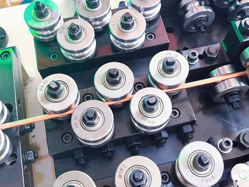 រោងចក្រ GRM Rolling Mill ផ្តល់ជូននូវម៉ាស៊ីនរំកិលខ្សែអេឡិចត្រូម៉ាញ៉េទិចដែលមានភាពជាក់លាក់ខ្ពស់ ដែលត្រូវបានរចនាឡើងសម្រាប់ការបង្កើតខ្សែមេដែករាងចតុកោណយ៉ាងច្បាស់លាស់។ គ្រឿងបរិក្ខារប្រើប្រាស់ដំណើរការដក ឬរំកិលត្រជាក់ ហើយធានាថា ខ្សែនេះមានរាងជ្រុងច្បាស់លាស់ តាមរយៈការរំកិលឆ្លងកាត់ច្រើន ហើយអាចត្រូវបានអ៊ីសូឡង់ជាមួយ enameled, ក្រដាស ឬ polyester ។ រោងម៉ាស៊ីនរំកិលមានប្រព័ន្ធគ្រប់គ្រងកម្រាស់ និងទទឹងកម្រិតខ្ពស់ ដើម្បីធានាបាននូវដង់ស៊ីតេ និងគុណភាពអ៊ីសូឡង់ដ៏ល្អឥតខ្ចោះ ហើយត្រូវបានគេប្រើយ៉ាងទូលំទូលាយក្នុងការផលិតឧបករណ៍អគ្គិសនីដែលមានប្រសិទ្ធភាពខ្ពស់ដូចជា ម៉ូទ័រ ប្លែង និងអាំងវឺរទ័រ។